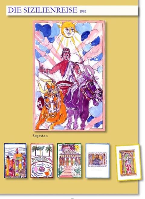 Der erste Zyklus beginnt mit Graphiken zum Text „Wanderung auf einem Stern“ in den Jahren 1975 bis 1976. Es folgen ein Zyklus aus Aquarellbildern, entstanden in den Jahren 1984 bis 1989, dann die Illustration zu dem Geschichtszyklus „Die Wanderungen El Raks“ (1987) sowie dem des „Hiob“ (1990). Weitere Zyklen bilden die Aquarellbilder von 1990 bis 1992 sowie die diesen folgende Illustrationen zu „Die Sizilienreise“ und dem Aquarellzyklus von 1994 bis 1996. Die „Bilder in Blau“ entstanden 1989. Ihnen schlossen sich die abstrakten Farbstiftzeichnungen aus den Jahren 2000 bis 2004 an, die durch Karten und Bilder aus den Jahren 2004 bis 2005 ergänzt wurden, der letzten Phase ihres künstlerischen Schaffens.